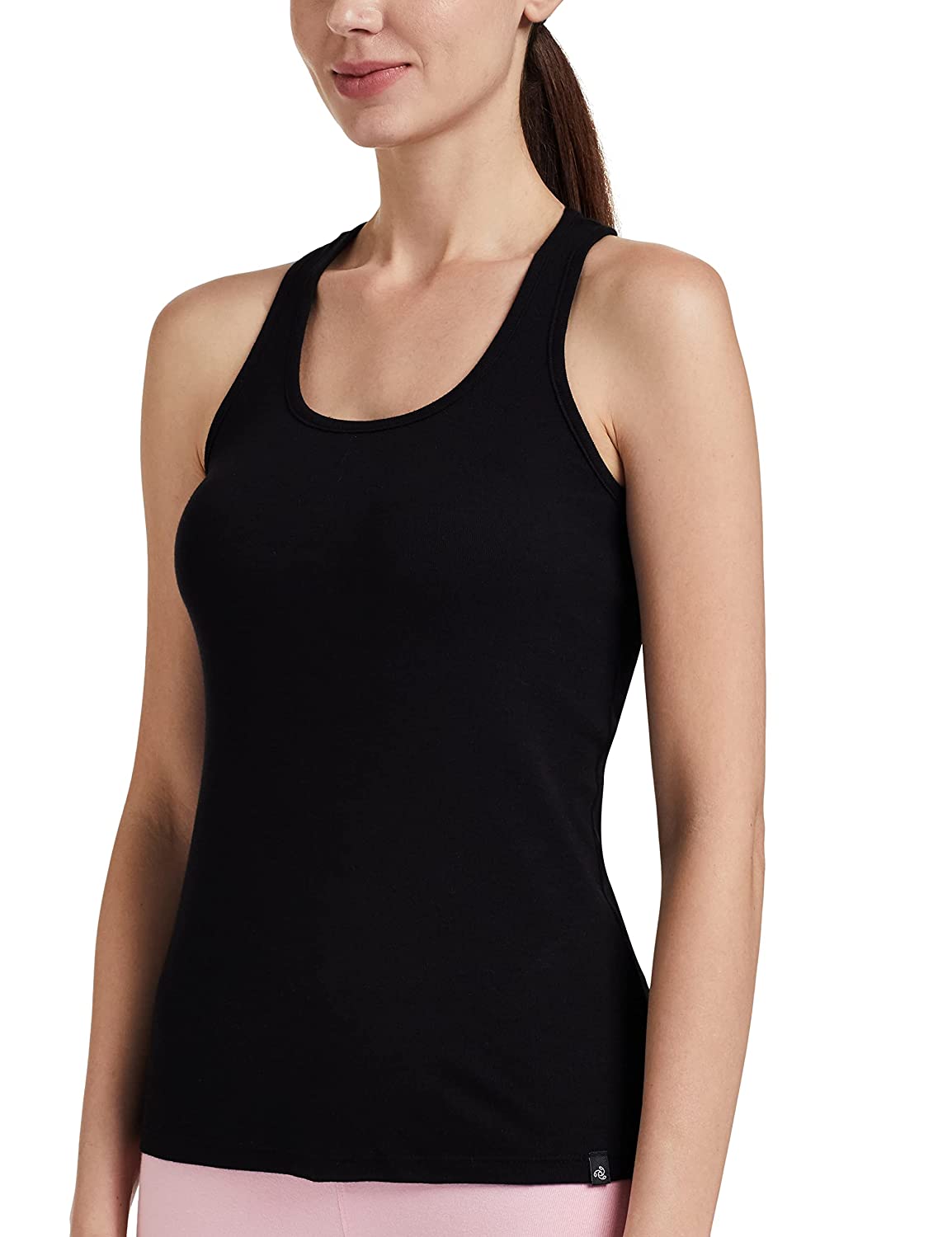 Super combed Cotton rib fabric. Slim fit. Racer back styling. Label free for all day comfort.